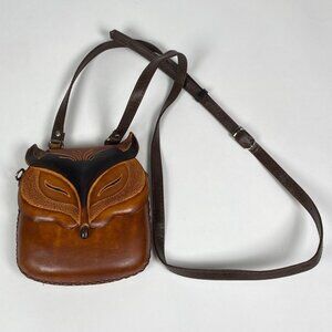 Leather Fox Face Crossbody Purse Shoulder Bag