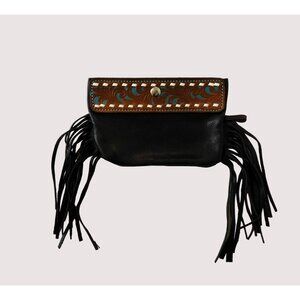 This compact leather fringe wallet is expertly crafted in rich, Western-inspired colors. Its 8.5 x 5.5 size makes it perfect for handheld use, blending stylish aesthetics with practical function.