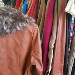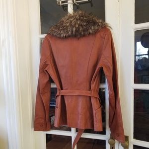 Rare H&M 100& leather jacket - with tie waist detail. I love this saddle tan leather color too! Right on trend!