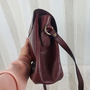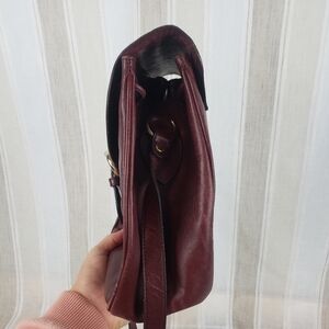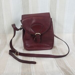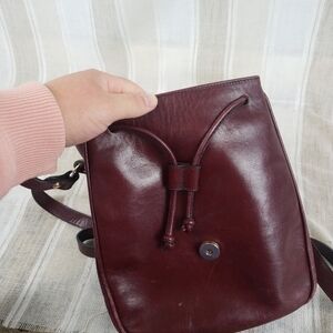 Leather Guild Drawstring Crossbody Bag Purse Maroon
