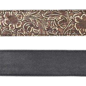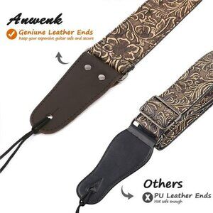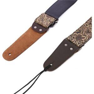 🧿Cool Looking&Stylish - Guitar strap with vintage imprinting flower on surface. Bronze strap Looks retro and never be out of fasion. Bronze leather ends perfectly matches the strap.Strap Material:PU Leather.