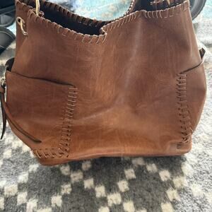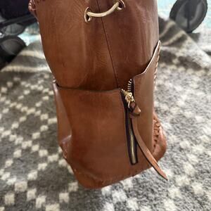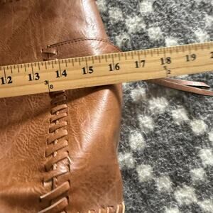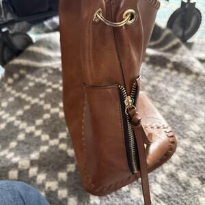 Leather Handbag Tote Purse Large Zip Pockets Gold Rings Boho Chic Oversized