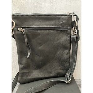 This handmade Guatemalan leather bag is perfect for any occasion. With a black crossbody strap and silver hardware, it features a multicolored exterior with accents of stitching and a buckle closure. The bag is medium-sized, with dimensions of 7" width, 9" height, and 1.5" depth.