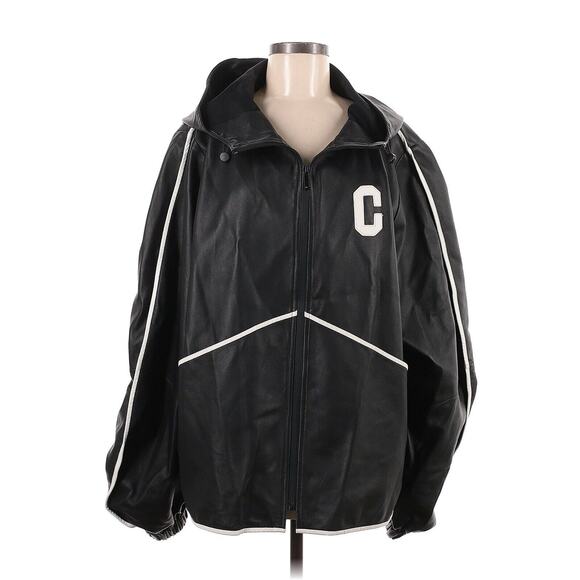 Leather Hooded Bomber Letterman Jacket Black C 38 US 6