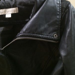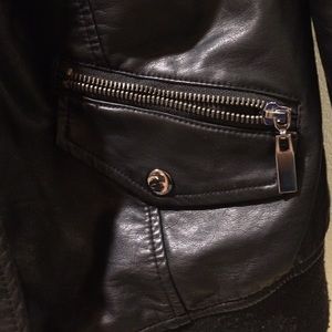 Black leather jacket with zipper pockets. Fairly worn but in great shape!