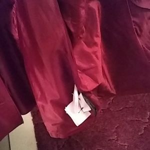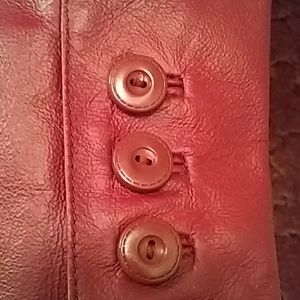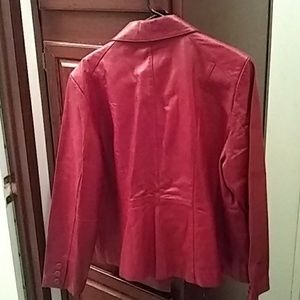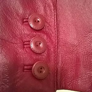Wine color genuine leather jacket worn once. Still has replacement buttons on inside with original foam protector.