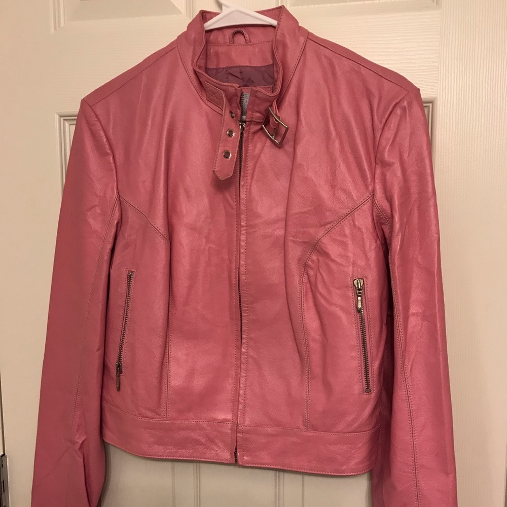 Pink real leather jacket