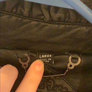 Black leather jacket, silk inside.