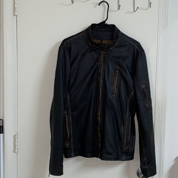 A warm and stylish leather jacket with no scratch or tear.