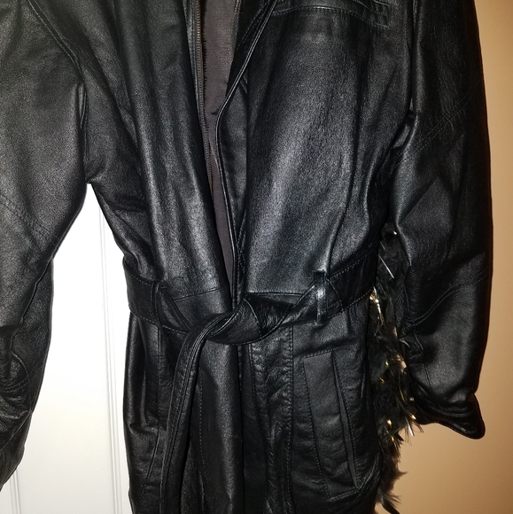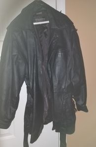 Very heavy leather coat with a leather belt