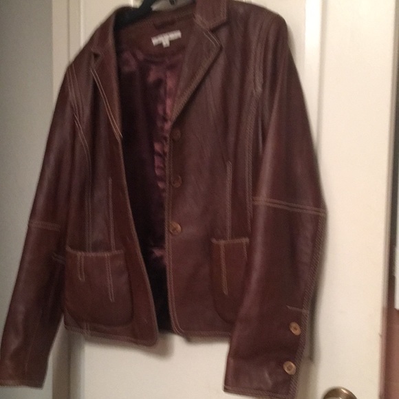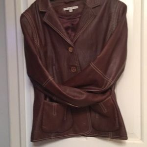 Brown 100% leather jacket w/ 100% polyester on the inside lining....