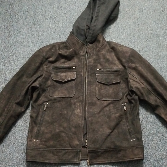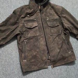 Cow Hide leather jacket with detachable hoodie and inner. YKK zipper