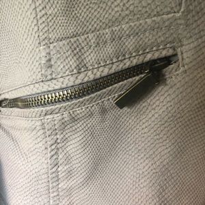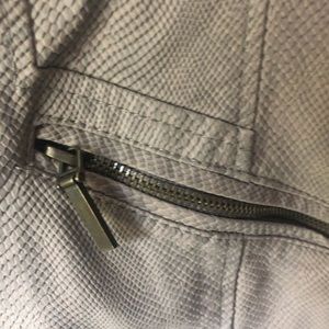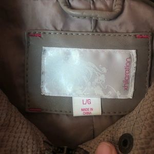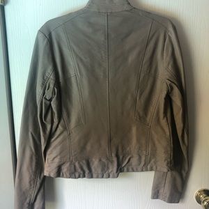 Moto faux leather jacket from target. Gently used. There is some fraying in the neck but it is still in good condition.