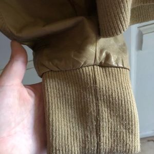 Tan/Brown fake leather jacket. Kind of a shorter jacket. Can fit anywhere from a size 18-22 comfortably.