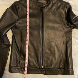 Classic leather jacket. Leather is in great condition. No tears or flaws but zipper snags a bit going up. Looks great on, but no longer fits me. Size 55 (fits like an XS).