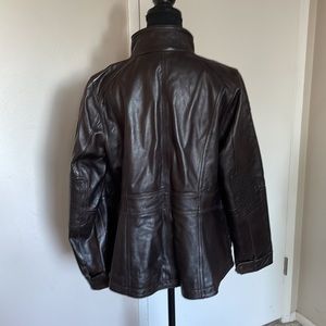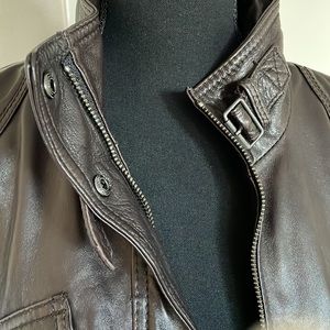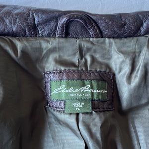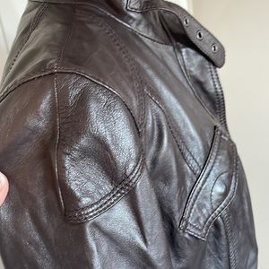Vintage Eddie Bauer, Chocolate Brown, buttery soft genuine leather jacket. Petite Large. Lots of details, fully lined. Good pre owned condition. Few small spots see photos for details. Bought at a vintage boutique and never wore.