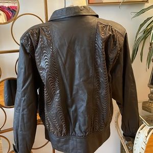 Brown patterned Leather Jacket. Size 12 by M Rochelle.