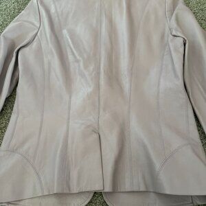 Lavender Metallic Lined Leather Jacket. By Louis Verdad. Mint Condition. Worn once. Listed as a Large size, it fits more like a Medium. Approximating that the largest bust would be a DD/G with a 34/36 inch back.
