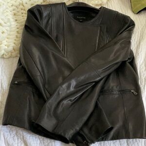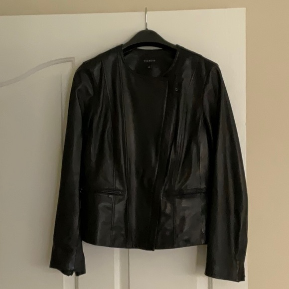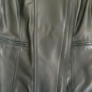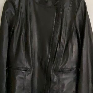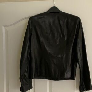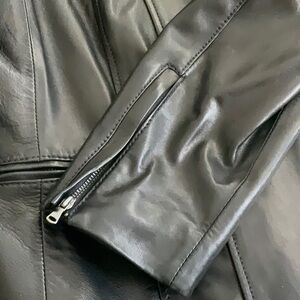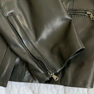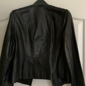 Lovely Black Motorcycle Leather Jacket! The leather is super soft and has no marks or scratches on it. This jacket is in excellent condition. The only reason I am selling it is because I got too fat to wear it. :( I am hoping someone out there will love it too.