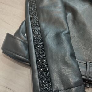 This one-of-a-kind jacket was purchased in Brazil and is absolutely gorgeous! Never Worn. It features a sleek design with sequins on the sleeves, a belt, and front pockets. The quality and detail make it truly stand out, but unfortunately, it’s just too warm for the weather in Florida. NWT tag.