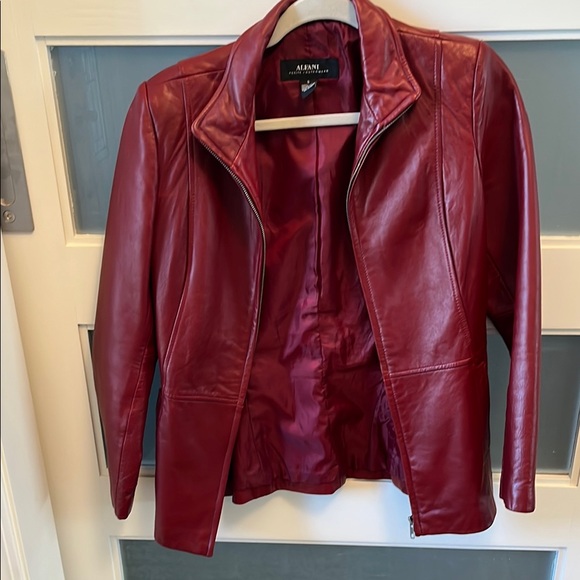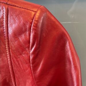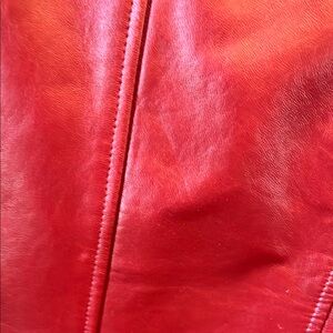 Red leather, pockets, zip