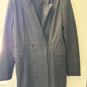 Leather long Jacket in excellent condition. Size L. I am size 8 wore it.
