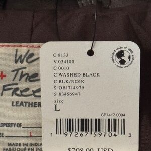 We the Free Skyline women’s jacket, never worn, NWT, size large. Dual zipper incredible black leather by Free People description: seems more black/brown but sure to patina dark, it is stunning. This jacket can’t be found anymore in Free People. This is an oversize somewhat sway back jacket with adjustable belt features at back and sleeves. This is an oversized jacket designed to fit large, good for layering. This is a heavy BEAUTIFUL classy and timeless jacket. They call it black looks brown black see photos.