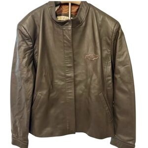 Excelled Collection Leather Jacket 2XL Brown Full Zip Fully Lined CHEVY embossed