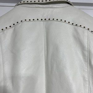 Vintage white leather jacket in great shape. Pockets, lined, Stud detail zipper and zippers on sleeves. Great detail vintage. Slight wear.