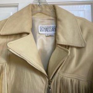 Renaissance leather jacket original purchased in Sacks in boston about 15 years ago, has some slight wear and tear, bottom of sleeves and a few spots but besides that it is in great condition I think I wore it 5 times max.