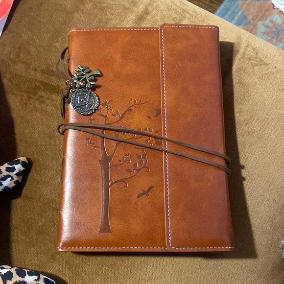 Beautiful leather journal. Lined 185 pages. 6x9 inches. Trees design. Pendants on leather rope to help wrap journal