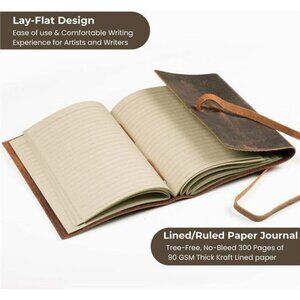 🧿PREMIUM QUALITY KRAFT PAPER – Leather journal notebook is filled with 150 sheets(300 Pages) of 90gsm weight, 6.5 mm ruled, 2-sided kraft paper that so you can confidently use most pens, pencils, and markers without ghosting and bleed-through.