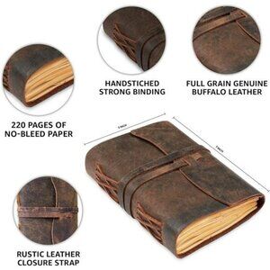 Leather Journal Vintage Writing Notebook Sketchbook Travel Diary 220 Pages