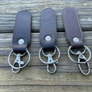 Leather Key chain Brown Genuine Leather Keys Holder Handmade Key Rings Set of 3
