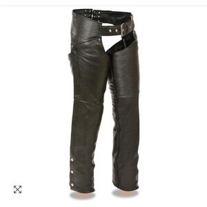 Leather King Motorcycle Chaps Pants Biker Cowboy Riding Racing Black SZ XL
