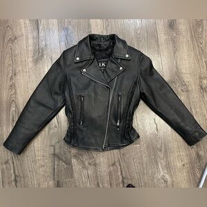 Leather King Sz XS Biker Style Braided Light Quilted Riding Leather Jacket Nice