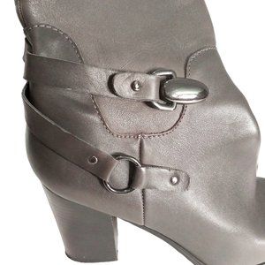 Leather Knee High Boots, Size 10M, Gray Block Heel Boot, Spring Fall Winter Boot
