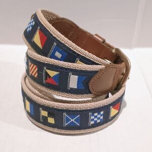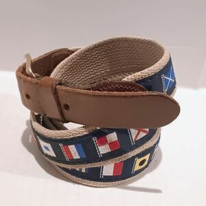 Leather Man Ltd Nautical Flags Belt-Canvas-Leather-Brass Buckle-Sailing-Prep