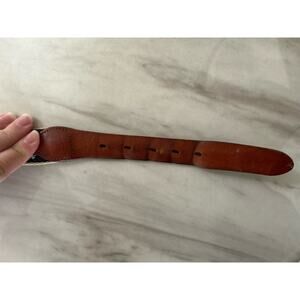 Marked size 42. From strap beginning at the buckle to the first hole, it measures 43 inches. Entire length of belt is 46 inches.