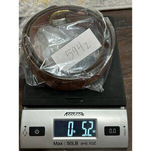 Minor scuffing and natural patina on brass buckle. Scratches visible on leather surface.