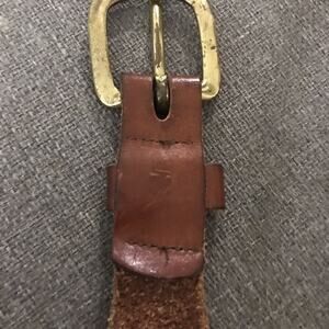 Leather Man Ltd Tropical Fish Web Belt. Leather Ends Brass Buckle. Size 32 stamped in last photo.. still good condition.
