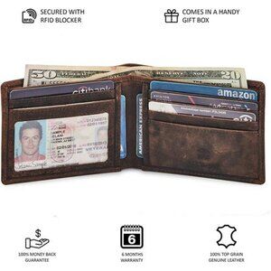 Leather Men Bifold Wallet RFID Blocking Slim Minimalist Front Pocket