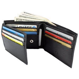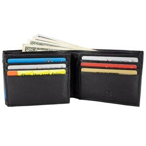 Leather Mens Wallet in Lambskin Leather, Black, Bifold Wallet