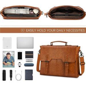 🧿【Durable & Waterproof Leather Messenger Bag】The laptop briefcase crafted in supple textured waterproof PU leather with cowhide pattern ,a hand-sprayed patina to bring an retro effect, reinvents the classic fashion business look.Besides, the bag’s sleek lines and portfolio feel exude modernity.