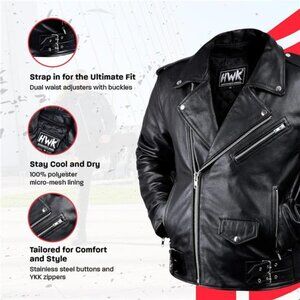 🧿Armor Up for Adventure. Conquer rough rides with our leather HWK Motorcycle Jacket with Armor. Enjoy ultimate impact protection with high-density removable CE armor on the back, elbows, and shoulders.