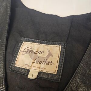 Leather Motorcycle Vest Black Adjustable Side Ties Pockets Mexico