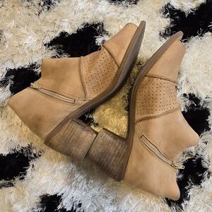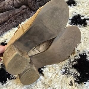 Roan by Bed Stu Katherine open-toe bootie. Brown/tan leather. Lightly worn and in good condition. Size 8