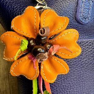 Leather Orange Heart Flower Purse Charm Genuine Leather Bag Charm NEW FAST SHIP