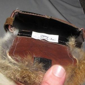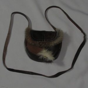 Leather Patch work Purse w/ Rabbit Fur. stap is 22-inch, purse is 6-inch wide, 5-inch tall. real rabbit fur.