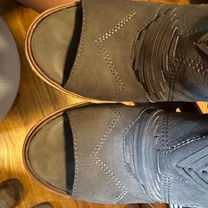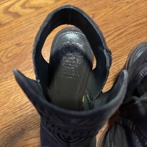 Vince Camuto Healed Sandals. The patten if the sandal is intricate and beautiful. Toes markes pictured, otherwise in great condition. Grayish tan color.